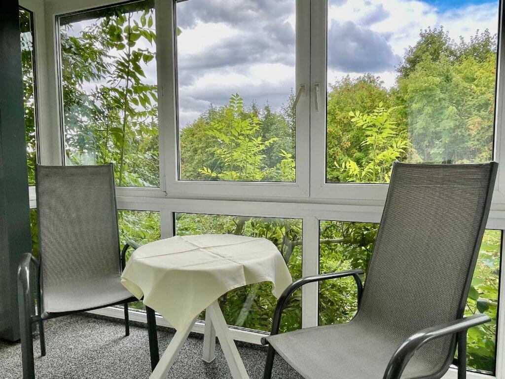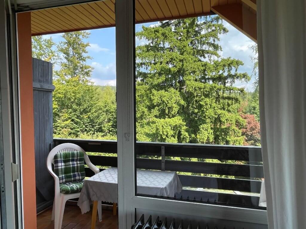 Vom Balkon, der Loggia oder dem Wintergarten genießen Sie den Blick in unseren großen Garten und die Natur des Fichtelgebirges.